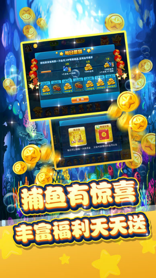 3、高度還原了遊戲廳的捕魚場景,讓玩家真切體驗到手機捕魚的樂趣。