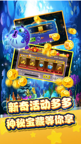 2、獨有的新3D捕魚夢幻海底場景,魚的種類更多,這裏妳真正能夠欣賞到壹個美麗的海底世界。